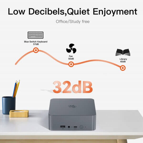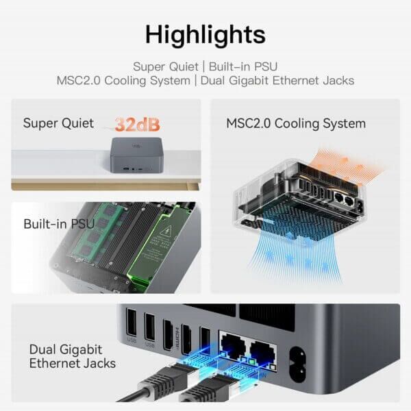 The Beelink EQR5 ensures efficient heat management with its innovative cooling system, featuring a heat pipe, silent fan, and heat fins, preventing CPU overheating and throttling while optimizing performance. The system is built for reliability and longevity, providing stable operation even during intense workloads.