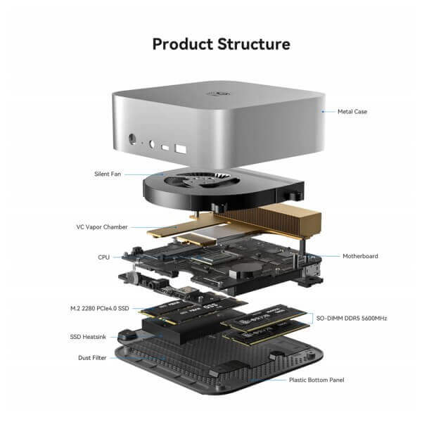 Designed for the modern multitasker, the Beelink SEi14 features the Intel Arc Graphics 2.2GHz (7 Cores), offering exceptional graphics performance with high technical support for 4K UHD content. This enables you to enjoy vivid and lifelike visuals, whether you’re working, gaming, or streaming videos. Additionally, it can connect to up to three monitors simultaneously via HDMI, DisplayPort 1.4, and the versatile Thunderbolt 4 interface, making it ideal for a multi-monitor setup and enhancing productivity in the office.