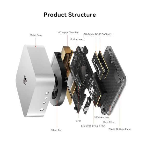 Equipped with MSC2.0 Vapor Chamber technology, the Beelink SER8 Nigeria excels in efficient heat dissipation. The vapor chamber rapidly disperses heat from the CPU to the plate, ensuring stable performance during intensive operations. Its high-speed read and write capabilities, paired with robust storage, make it an ideal choice for tasks such as video editing, rendering, design, gaming, and more. Offering lag-free performance and support for multitasking, the SER8 delivers exceptional speed and capacity to meet both work and entertainment needs. It ensures ultra-high frame rates and advanced content creation capabilities, making it a powerhouse for handling heavy computing tasks and AAA games effortlessly.